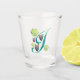 Un vaso tropical con un alfabeto impreso con flores de monstera.