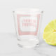 Este diseño de cristal de escote presenta un alegre saludo "Merry & Bright" sobre un fondo rayado rosa y rojo.