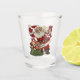 1.5 oz. de vidrio de disparo con una imagen vintage de la década de 1940 de jolly Saint Nick con una bolsa llena de juguetes y una caja de Navidades animando. Ver la tarta de caramelo, taza de expreso, matraz, tazón, jarra, placa de papel, tetera y tiras acuáticas. Ver toda la colección de vidrio caliente de feriado en los ALIMENTOS/BEV | Sección de platos.