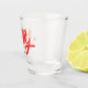 Navidades Holly Jolly Fun Winter Personalized Name Shot Glass presenta el texto "Holly Jolly en la tipografía de escritura de caligrafía moderna en rojo y azul y personalizado con tu nombre personalizado. Acentuado con hojuelas y copos de nieve. Los regalos perfectos para Navidades y vacaciones o para fiestas Navidades. Diseñado por ©Evco Holidays www.zazzle.com/store/evcoholidays