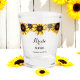 Novia Amarillo Blanco Vaso de Chupito con Girasoles Acuarela, Texto de Boda y Fecha. Más productos con este diseño están en la colección abajo.