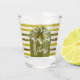 Moda de palmeras tropicales en rayas y la palabra Cheers decora estos divertidos vasos de tiro. COINCIDIENDO elementos de nuestra colección.