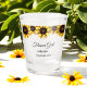 Vaso de chupito para niña de las flores de boda de girasoles con girasoles de acuarela, texto de boda y fecha. Más productos con este diseño están en la colección a continuación.