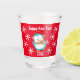 Todo listo para celebrar el año nuevo, este feliz pingüino aparece en este vaso. El pingüino feliz lleva una bufanda rayada y los arbustos rosas. El fondo rojo tiene copos de nieve blancos y se puede personalizar. También puede personalizar del texto.