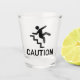Que todos sepan que son torpes y propensos a bajar las escaleras con esta imagen negra de un ícono de una persona cayendo por unas escaleras. La palabra precaución en la fuente en mayúsculas.