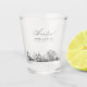 Regalo de vaso de chupito de la silueta moderna de Louisville con la escritura "cheers". El diseño muestra un boceto impresionante con la capacidad de personalizar sus nombres y ubicación exacta. Ingrese a la herramienta de diseño de Zazzle para personalizaciones adicionales.