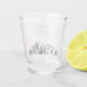 Recuerdo de regalo de vaso shot de boda moderno de Raleigh con guión de "saludos". El diseño muestra un boceto impresionante con la capacidad de personalizar sus nombres y ubicación exacta. Ingrese a la herramienta de diseño de Zazzle para personalizaciones adicionales.
