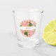 Este vaso de chupito sería un regalo divertido para tus Damas de Honor y Dama de Honor. Cuenta con un ramo de rosas rosadas y durazno, claveles e hibiscos con un toque de follaje verde musgo. Puedes personalizarlo con los nombres de tus Damas de Honor en el centro sobre un fondo blanco bordeado por tiras de lámina dorada.