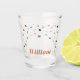 Crea un regalo personalizado para los miembros de la fiesta de boda o para cualquier ocasión. Este cristal de disparo presenta un diseño inspirado en la baldosa italiana de terrazo en tonos cálidos de tierra con un toque de color. Añada un nombre con letras en negrita y modernas en color naranja de óxido.