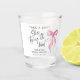 Toma un Trago Está Atando el Nudo Vasos de Chupito Personalizados para Despedida de Soltera. Tema coquette de lazo rosa. © Kimbellished, LLC