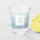 Vidrio de color azul de agua Boda. Esta moda y elegante vidriera de boda azul polvoriento presenta un bonito fondo oscuro pintado con una bella acuarela blanca, los nombres de los novios y la fecha boda. Los elementos coincidentes se encuentran en la colección Watercolor Ombre.