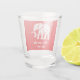 A white elephant on a red shot glass.