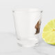This clear shot glass features a realistic Yellow Labrador Retriever portrait printed directly on the glass with no background or wording — clean, simple, and instantly recognizable.