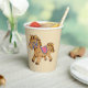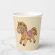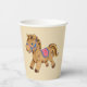 taza de papel con un lindo caballo de juguete para la ducha de bebé o la fiesta de cumpleaños de un niño pequeño.