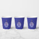 Ornamento de vacaciones en azul. Dibujo de tinta de una decoración de árbol redondeado con "Paz en la Tierra" bajo arcos de aspecto 3D que soportan el "techo" de la órbita. Fondo azul. Obra original de John Alexander Muir.
