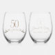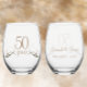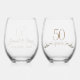Cree un hermoso toque personalizado único para el aniversario de la boda añadiendo los nombres y la fecha de la pareja a este vaso. Mi original diseño plateado dorado de los giros irradia desde ambos lados del guión, "50 años". Este diseño único tiene un aspecto metálico en gradiente, pero no es un Relieve metalizado real. Personalice estos hermosos vasos de vino sin tallo de calidad con el nombre de la pareja escrito en la moderna y elegante tipografía de bronce dorado. Al dorso del regalo de aniversario puedes añadir la fecha del aniversario del boda o también la fecha del matrimonio o personalizar el vaso con un mensaje propio. También puedes cambiar el número de la parte delantera por un quinto aniversario, o 10, 25 o 60 o cualquier aniversario que necesites. Este sería un encantador regalo de aniversario de boda dorado o el paladín de la pareja, o un favor de fiesta para los invitados de un fiesta de aniversario.