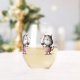 This stemless wine glass features an adorable cat illustration of a whimsical, fuzzy cute, and carefree kitty with just hanging and enjoying some wine, it features soft pink pastel tones, in a charming scene that captures the playful and loving personality of cats who drink. The text caption can be changed to fit your occasion, need or a specific person. This wine glass is perfect for cat lovers, animal lovers, and fans of hand drawn and kawaii style artwork, A humorous kitten design that will capture the heart of anyone you may wish to gift it to or enjoy a glass with, be it your Mother, Grandmother (maybe not), sister, aunt, girlfriend, cat mom, best friend, or anyone who loves animals, cats, or kittens.