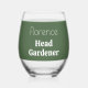 Una cristalera sin tallo para los amantes del jardín, de estilo elegante y minimalista. El elegante cristal se puede personalizar con el nombre del destinatario, que aparecerá en blanco sobre las palabras "Head Gardener", sobre un fondo verde sabio. Siéntese, relájese y disfrute de su bebida favorita después de haber completado el día de jardinería.