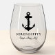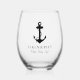 Una copa de vino de temática náutica para tu barco, con un clásico ilustracion negro de ancla y cuerda, y el nombre y ubicación de tu barco en un guión y una tipografía elegantes.