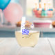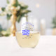 La copa de vino sin tallo personalizada incluye una bandera griega ondeando y palabras que dicen: "La sangre de Hellas fluye a través de mis venas. Y a veces... es ouzo". El vaso de vino es divertido para reír o para tostarse en el Día de Oxi o en cualquier momento. Agregue un nombre y cree un regalo personalizado. Guay, bar en casa o regalo de bienvenida. Diversión de usar en reuniones de amigos o familiares.