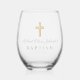 Texto personalizado Cruz religiosa Polvoriento Guión Azul Niño Bautismo Vino sin Stemless.