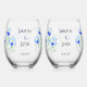 Gafas de vino sin cáscara con hermosas imágenes de flores de crocus azules. Las imágenes, el fondo y el texto se pueden personalizar. Obra de arte original de W.B.