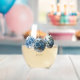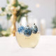 Aquí hay una imagen con tres adornos navideños. Cada decoración tiene un diseño de rosa azul diferente. En la parte posterior del texto se lee Seasons Greetings (Saludos de temporada) o se puede agregar un mensaje propio.