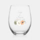 Esta copa de vino sin tallo personalizada es perfecta para su boda de otoño o otoño en un ambiente rústico. Presenta un ilustracion de color agua suave en suaves tonos otoñales con ilustraciones de calabazas y calabazas en naranja, marfil blanco suave y verde claro y sus nombres y fecha boda arriba.