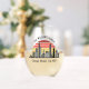 Personalized Chicago Illinois vacation wine glass with a silhouette of the city skyline in front of a cool sunset. Cool trip keepsake souvenir for a family trip.