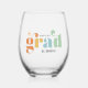 Esta clase multicolor de diseño grad 2025 presenta un tema retro con colores boho. Esta copa de vino es un regalo divertido para este graduado universitario de este año.