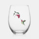 Esta hermosa copa de vino sin tallo incluye un colibrí dibujado a mano que visita una flor de Bignonia con tinta negra.