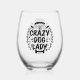 Locura perra señora perro mamá vino de vidrio. Esta copa de vino, duradera y elegante, presenta un bonito emblema estilo doodle con la frase "Crazy Dog Lady" en texto negro. También tiene acentos lindos como un collar de perro, orejas de perro y una silueta de hueso. Este vaso es un regalo perfecto para la persona loca de perro en tu vida.