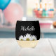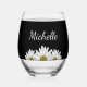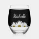 Vidrio rústico moderno sin tallo, con un diseño de margaritas blancas en un fondo negro. Con la tipografía de escritura de personalizable blanco puede añadir su propio nombre. Ideal para añadir un estilo botánico a tu entretenimiento.