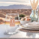 Diseñada para los amantes de la sencillez con un toque de terracota, las piezas de esta suite boda se encuentran en un entorno árido, en una tranquila paleta de colores que se armoniza con los elementos de diseño minimalista, incluyendo imágenes subestimadas de la flora desértica, un guiño tenue al silencio del esplendor del desierto. La copa de vino sin tallo que se muestra aquí con franjas de acento coloridas en terra cotta y un pequeño motivo de cactus saguaro, proporciona una plantilla para añadir fácilmente sus iniciales y fecha de boda. Busque ID1019 para ver todos los productos de este conjunto de bodas.