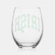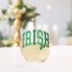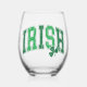 Muestra tu orgullo irlandés con este divertido vaso de vino sin tallo que incluye la palabra "IRISH" en un guión retro de letras de barro curvo con colores angustiados de luz y verde oscuro.