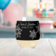 Este elegante diseño nupcial presenta hermosos copos de nieve de diamante en un fondo negro personalizado con los nombres de la pareja boda y la fecha boda. Perfecto para una boda de invierno con chispas y relampagos. Consulte la coordinación de elementos de esta colección.