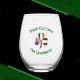 La copa de vino sin tallo personalizada incluye las banderas de Italia, Irlanda y Estados Unidos de América (EEUU) en las hojas de este shamrock, diseñado para celebrar el Día de San Patricio, el 4 de julio, y las festividades italianas. Arriba están las palabras TRES CULTURAS. Abajo, UN NOMBRE. Las palabras están en verde oscuro, estilo celta, letras circulares. Agregue un nombre en el lugar adecuado para un aspecto personalizado o un regalo.
