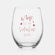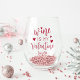 Acogedor con un vaso fresco de su vino favorito, este El día de San Valentín con este vaso sin tallo para los amantes del vino, con la cita "el vino es mi San Valentín", adornada con corazones de estilo manual. Personalice con un nombre o su elección de texto personalizado debajo.