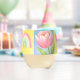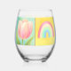 Vaso De Vino Elegant Abstract Floral Checkerboard Pattern