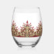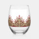 Sophisticated and Elegant Damask Red and Gold Pattern Stemless wine glasses featuring, a Damask pattern with red and gold floral flourishes on a white background.