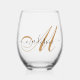 Vaso De Vino Elegante Monograma Gold Script Nombre