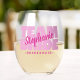 El diseño de vidrio de personalizado sin tallo para su fiesta nupcial incluye "TEAM BRIDE" en negrita de color rosa claro. Personalizar el nombre de la dama de honor en la coordinación del guión rosa brillante oscuro. A continuación se muestra el título o el texto del personalizado. Todos los colores de este diseño son personalizable en el área de la herramienta de diseño Zazzle! Mensaje con preguntas o solicitudes de color personalizado.