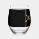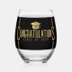 Vaso de vino de felicitaciones en negro y dorado para una fiesta de graduación. El diseño presenta un borde de triple cuadrado, gorra de graduación y texto personalizable del año de graduación. Personalízalo con tu clase de año y nombre. Adecuado para cualquier tipo de graduación: escuela secundaria, universidad, enfermería, etc.