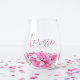 Comienza la fiesta con estas hermosas copas de vino sin tallo personalizadas que son perfectas para fiestas de despedida de soltera, damas de honor o cualquier ocasión. El diseño presenta un nombre en estilo de letra manuscrita rosa moderna y tipografía cursiva.