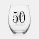 Celebrate in style with this modern stemless wine glass, perfect for a “Fifty and Fabulous” birthday celebration or any milestone event. The glass features a large “50” across most of the front, with the word “fifty” written in elegant black script layered over it. Just below, “fabulous” appears in bold black sans serif font for a sleek, modern look.
