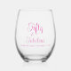 Fifty and Fabulous Script 50th Birthday Party Stemless Wine Glass that you can personalize for your fiftieth birthday party celebration. The words "Fifty and Fabulous" are set using a trending script font . Text colors can be changed using the edit menu.
