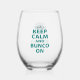 Gracioso Fiesta de Bunco Vidrio sin Piedras. ¡Mantengan la calma y el Bunco encendidos! Completa con corona y dados de bunco. Perfecto como premio o regalo para sus próximos Chicas Noche fuera! Moderno y elegante.