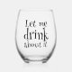 Gracioso Pun Let Me Drink About It Stemless wine glass de Ricaso - Toma una copa y piensa en ello.