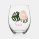 Esta copa tropical de vino de la Bachelorette incluye un divertido grupo de gorras y copas de sol acentuadas por las hojas de monstera tropical, añada tu nombre para personalizar este divertido recuerdo.