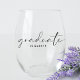 Elegante copa de vino sin tallo para brindar por la graduada en su fiesta de graduación con "graduada" en un guión moderno de moda y su nombre en simple tipografía.